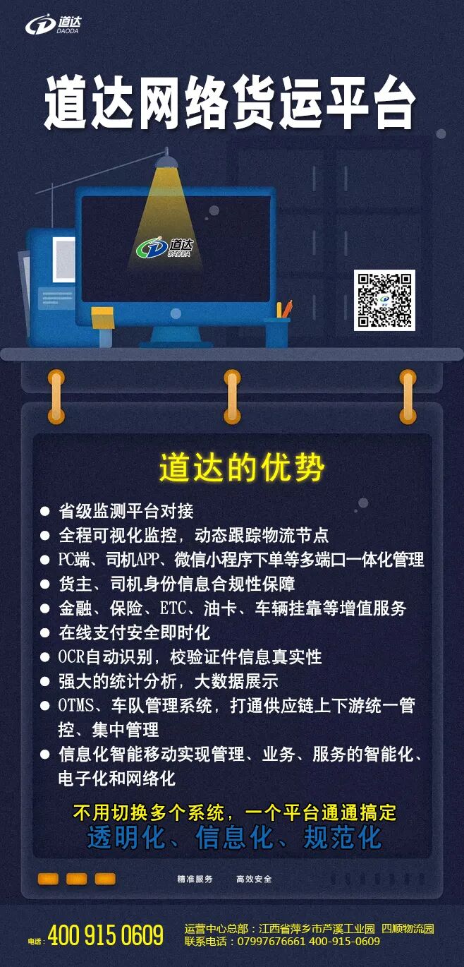 依托互聯(lián)網(wǎng)、大數(shù)據(jù)、人工智能等技術(shù)7*24小時(shí)竭誠(chéng)為您服務(wù)您還沒(méi)有用過(guò)道達(dá)網(wǎng)絡(luò)貨運(yùn)平臺(tái)服務(wù)千家萬(wàn)戶 保障全程無(wú)憂道達(dá)網(wǎng)絡(luò)貨運(yùn)平臺(tái)創(chuàng)新物流的傳統(tǒng)運(yùn)輸方式,以物流供應(yīng)鏈上下游客戶需求為核心,上承發(fā)貨方,下接收貨方,中間聯(lián)通眾多物流承運(yùn)方,結(jié)合貨主和司機(jī)的切實(shí)需求,實(shí)現(xiàn)快捷、高效、準(zhǔn)確、實(shí)時(shí)的物流數(shù)據(jù)互聯(lián)互通。平臺(tái)借助財(cái)務(wù)管理和結(jié)算系統(tǒng)、大數(shù)據(jù)分析系統(tǒng)、決策支持系統(tǒng),實(shí)現(xiàn)物流信息化、智能化運(yùn)作,平臺(tái)數(shù)據(jù)嚴(yán)格遵循五流合一原則,對(duì)業(yè)務(wù)真實(shí)有效做到嚴(yán)格把控,杜絕虛開,合法合規(guī),幫助貨主企業(yè)獲取9%物流進(jìn)項(xiàng),緩解稅務(wù)壓力,從根本上降本增效。千萬(wàn)別錯(cuò)過(guò)如此高效的移動(dòng)辦公模式歡迎在各大AppStore/應(yīng)用商店下載