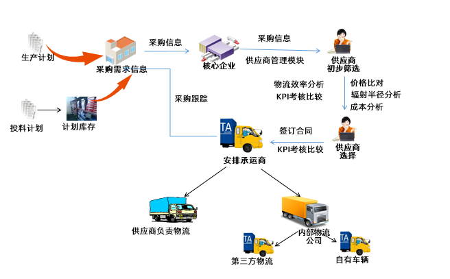 將產(chǎn)業(yè)鏈上游生產(chǎn)計劃進(jìn)行共享,協(xié)同產(chǎn)業(yè)鏈條采購信息,進(jìn)行物流計劃及物流作業(yè)安排,實現(xiàn)商流物流一體化。